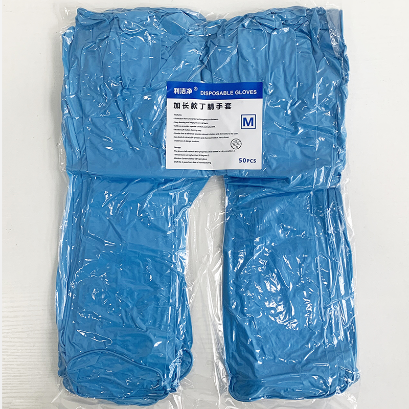 16寸加長加厚藍(lán)色丁腈手套