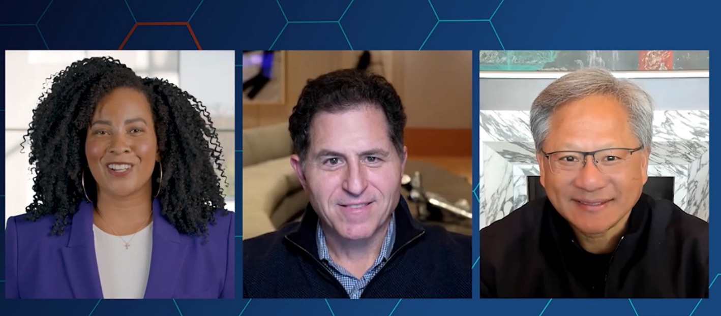 NVIDIA 創(chuàng)始人兼首席執(zhí)行官黃仁勛與戴爾技術(shù)創(chuàng)始人兼首席執(zhí)行官M(fèi)ichael Dell 在活動(dòng)上進(jìn)行了爐邊談話。在談及如何慶祝雙方公司長(zhǎng)達(dá) 25 年的合作歷史時(shí),兩位首席執(zhí)行官表示將通過(guò) AI 的視角來(lái)解決企業(yè)面臨的挑戰(zhàn)。